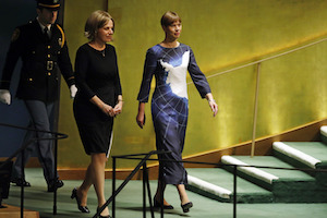 Kersti Kaljulaid, Estlands Präsident, setzt modischen Zeichen gegen abschmelzende Pole. picture alliance/AP Photo/Richard Drew